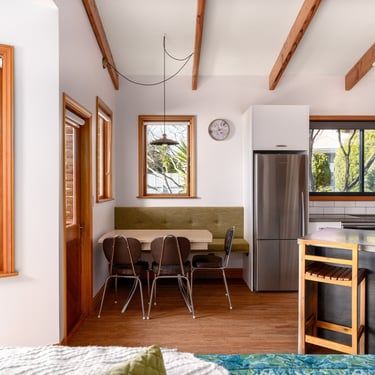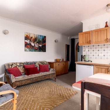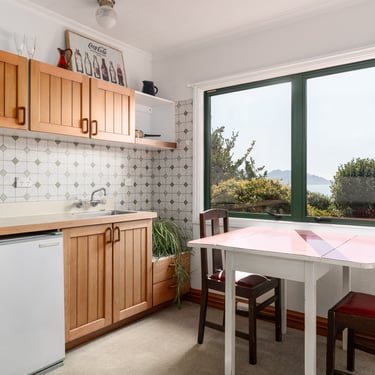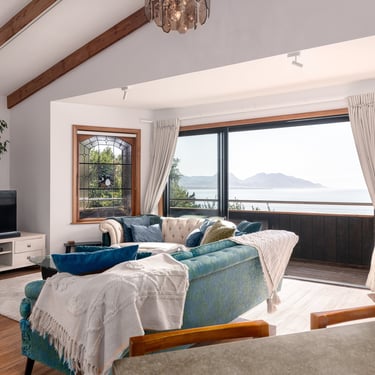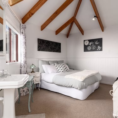 Surrounded by flax and small trees often visited by Tui you have all the privacy you need. Watch the sun and moon come up and arc the sky from your bed or the Gallery living areas. Out through the side doors takes you to a mystical garden area and down the stairs to the Hideaway which can be rented as an extra with the Gallery. The Hideaway is a self-contained unit with a king-size bed, bathroom, and kitchenette. It is private and tucked away with sea and mountain views.
